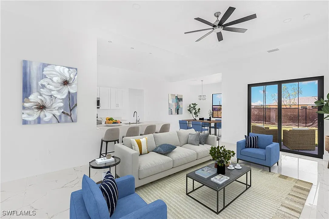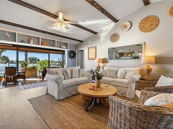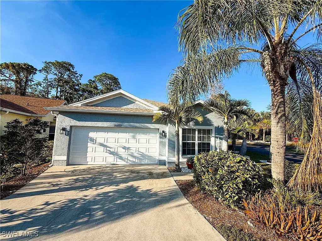 Lowest-priced 3-bedroom, 2-bath home in The Island Club! This bright, move-in-ready single-family home offers a spacious layout with a large living room featuring crown molding, flexible space for a home office, and sliding glass doors that fill the home with natural light. The primary suite includes room for a king-size bed, walk-in closet, and updated en-suite bath, while two guest bedrooms share a full bath. Enjoy indoor-outdoor living with a screened lanai, concrete patio, and newly planted privacy hedge. Situated on a corner lot with tropical landscaping, this home features newer flooring, fresh paint, updated lighting and hardware, a tankless water heater, and a 2020 roof and AC. Conveniently located near the clubhouse, pool, fitness center, and guest parking. The Island Club is a gated, all-ages community with a lakefront clubhouse, pool, spa, fitness center, tennis, pickleball, shuffleboard, and low HOA fees that include water, sewer, lawn care, and cable—just minutes from RSW, I-75, FGCU, and shopping.